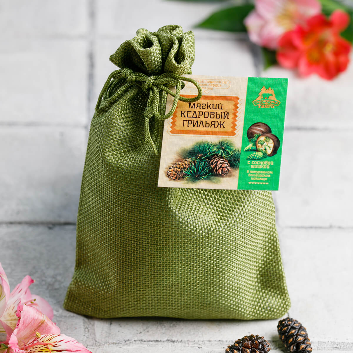 Конфеты «Мягкий кедровый грильяж с сосновой шишкой» в холщовом мешочке, 150 г