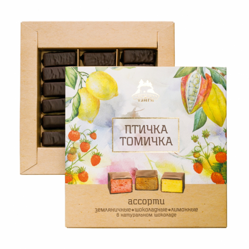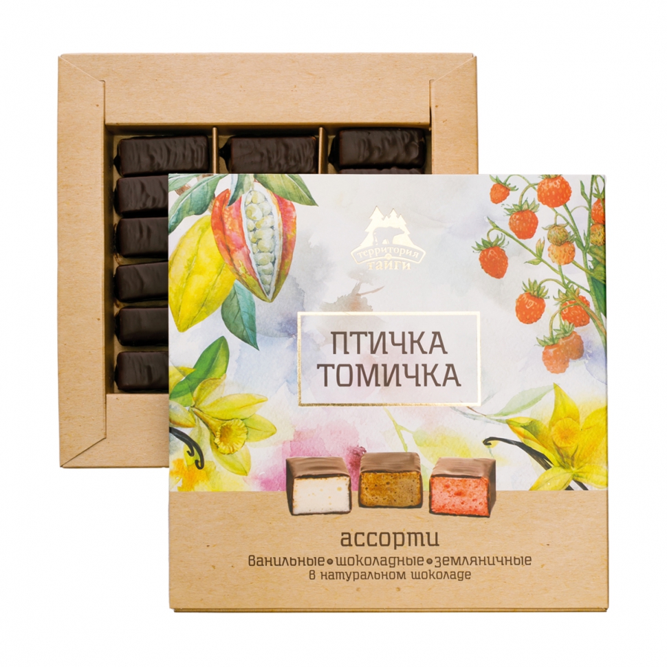 Артикул: 28065; Кол-во в месте: 6 шт.; Вес: 0.295 кг; Cрок годности: 91 день; Состав: Конфета ванильная- сахар, патока, шоколад темный (какао тертое, сахар, масло какао, соевый лецитин, натуральный ароматизатор "Ваниль"), вода питьевая, масло сливочное, молоко сгущенное, яичный белок, загуститель агар-агар, лимонная кислота, сорбат калия, натуральный ароматизатор "Ваниль". Конфета земляничная- сахар, патока, шоколад темный (какао тертое, сахар, масло какао, соевый лецитин, натуральный ароматизатор "Ваниль"), вода питьевая, масло сливочное, молоко сгущенное, яичный белок, сублимированная земляника, загуститель агар-агар, лимонная кислота, сорбат калия. Конфета шоколадная- сахар, патока, шоколад темный (какао тертое, сахар, масло какао, соевый лецитин, натуральный ароматизатор "Ваниль"), вода питьевая, масло сливочное, молоко сгущенное, какао-порошок, яичный белок, загуститель агар-агар, лимонная кислота, сорбат калия, натуральный ароматизатор "Ром".; Условия хранения: Хранить при температуре от 15 до 21 градуса и относительной влажности воздуха не более 75%.; Пищевая и энергетическая ценность на 100 г: 380 ккал, белки 2 г, жиры 17 г, углеводы 54 г