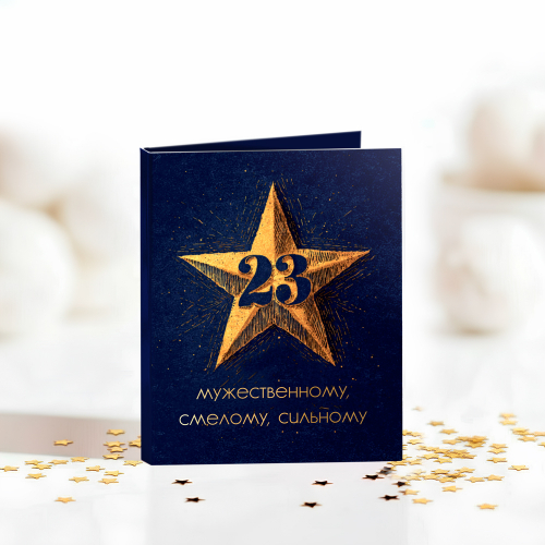 Мини-открытка "23 (мужественному, смелому, сильному)" синяя