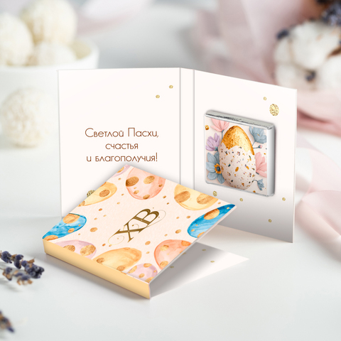 Мини-открытка с шоколадом "ХВ (яйца акварелью с золотом)"