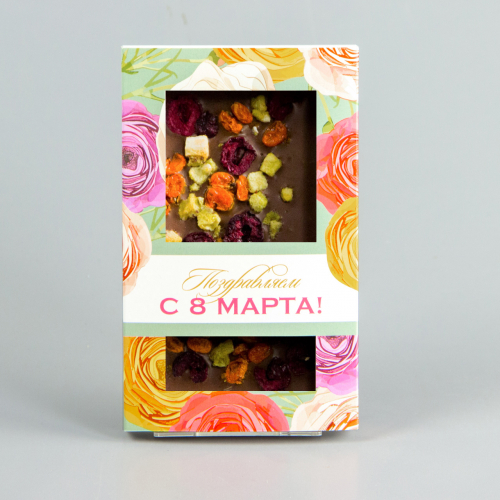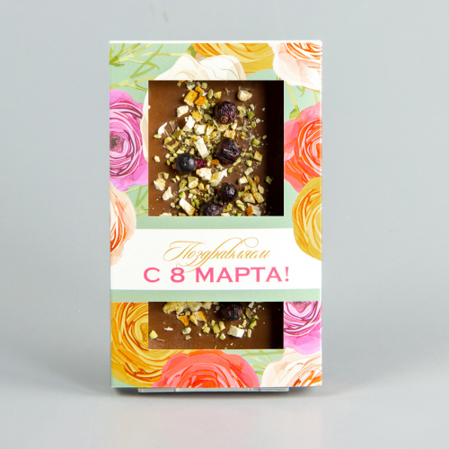 Молочный шоколад с апельсином, чёрной смородиной и фисташками, коробочка с 8 марта #4