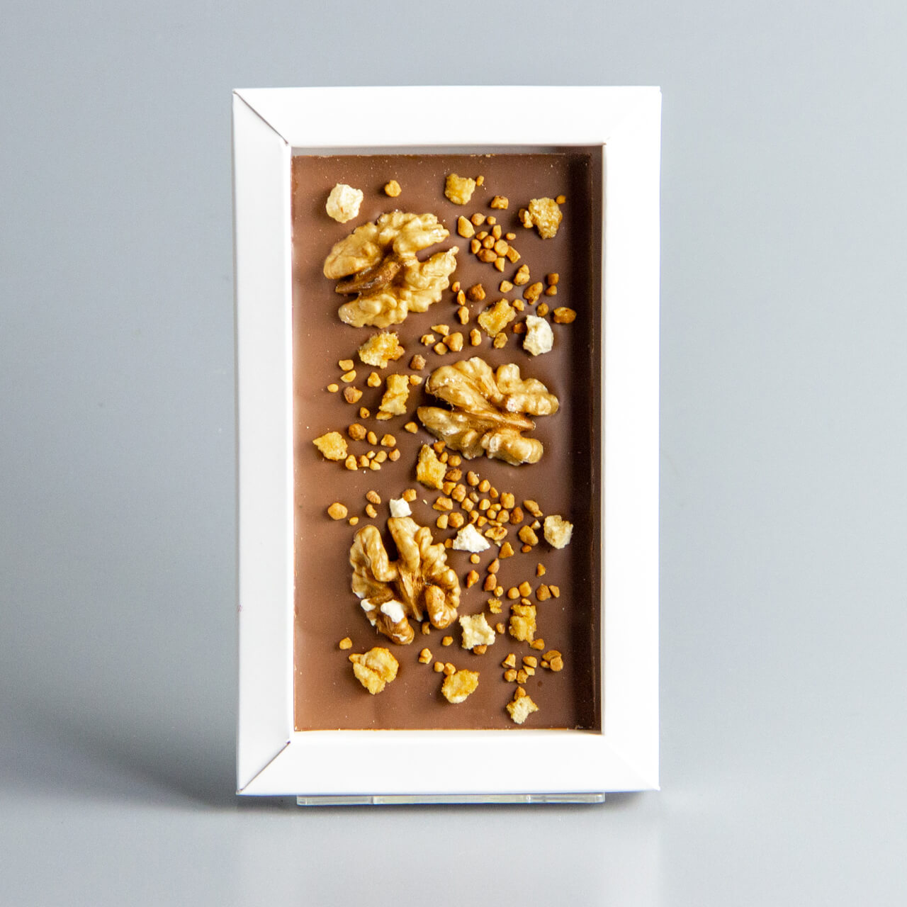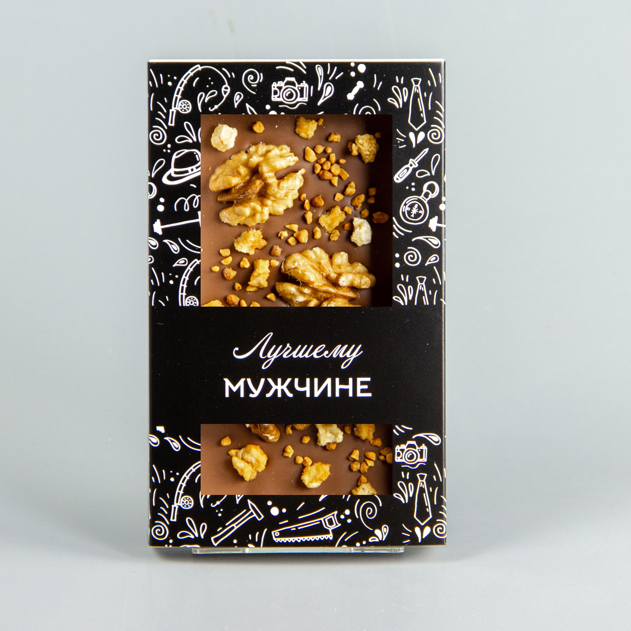 Молочный шоколад с грецким орехом, фундуком и карамелизированным фундуком, коробочка мужчине #2