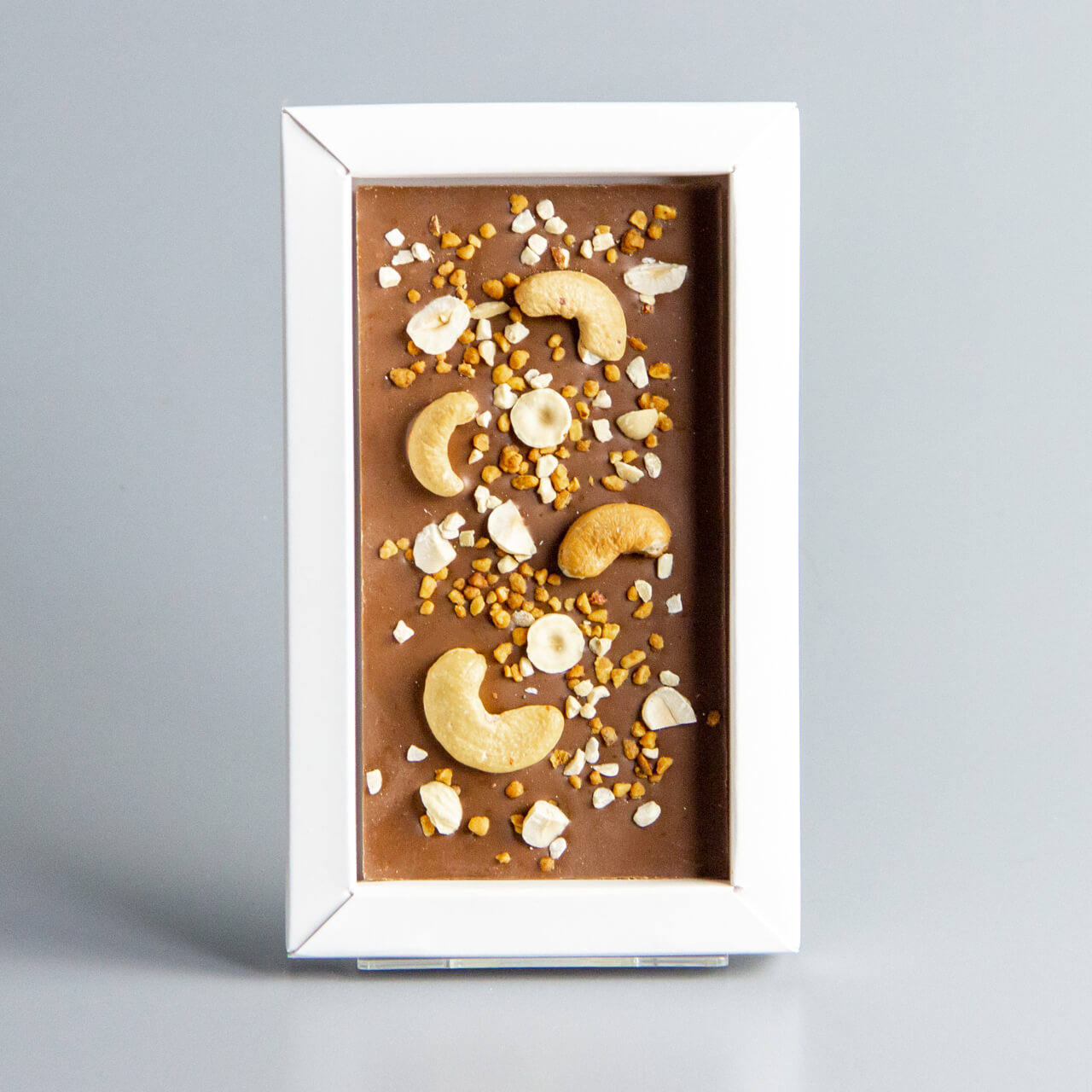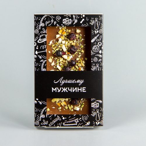 Молочный шоколад с кешью, фундуком и карамелизированным фундуком, коробочка мужчине #5