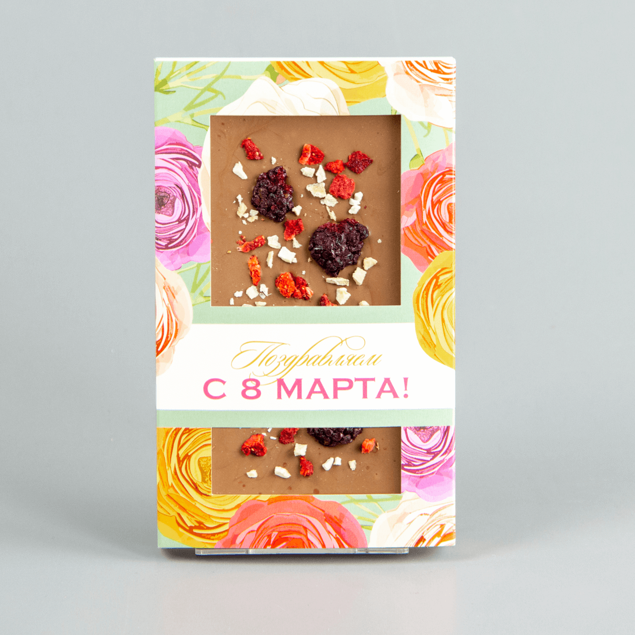 Молочный шоколад с клубникой, ежевикой и манго, коробочка с 8 марта #23