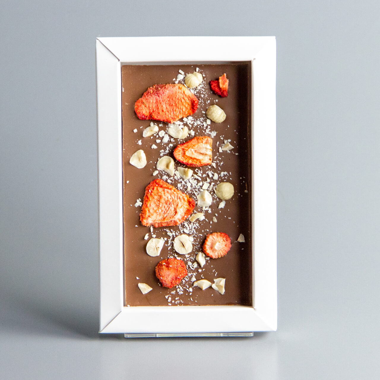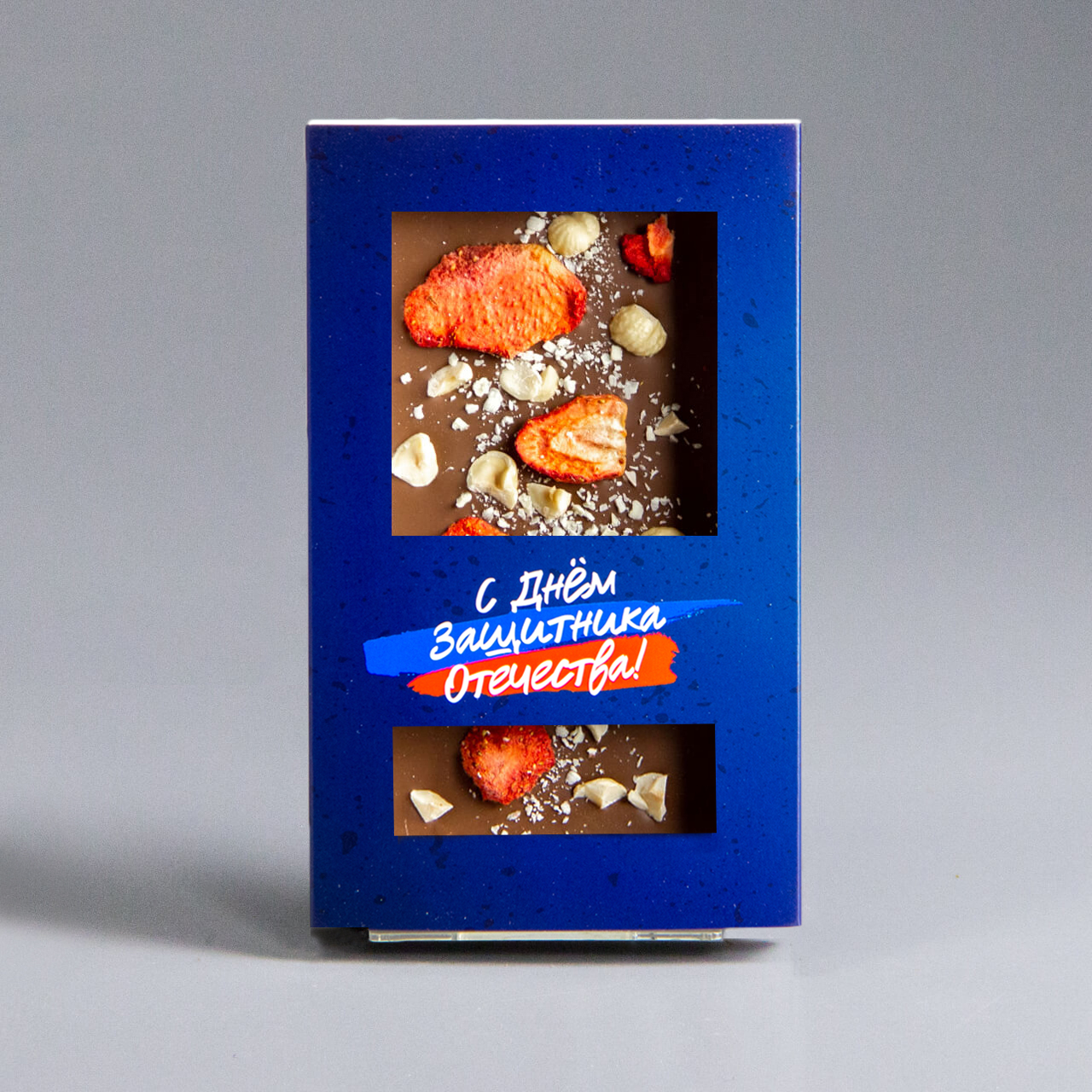 Молочный шоколад с клубникой и фундуком, синяя коробочка #6