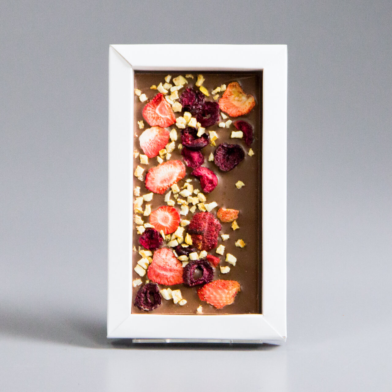 Молочный шоколад с клубникой, вишней и абрикосом, коробочка мужчине #14
