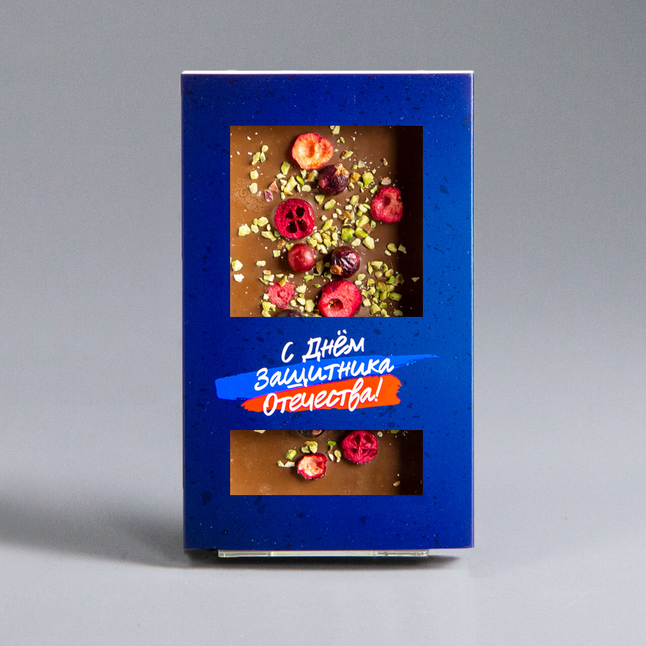 Молочный шоколад с клюквой, черной смородиной и фисташками, синяя коробочка #7
