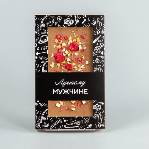 Молочный шоколад с клюквой, миндалём и фисташками, коробочка мужчине #19
