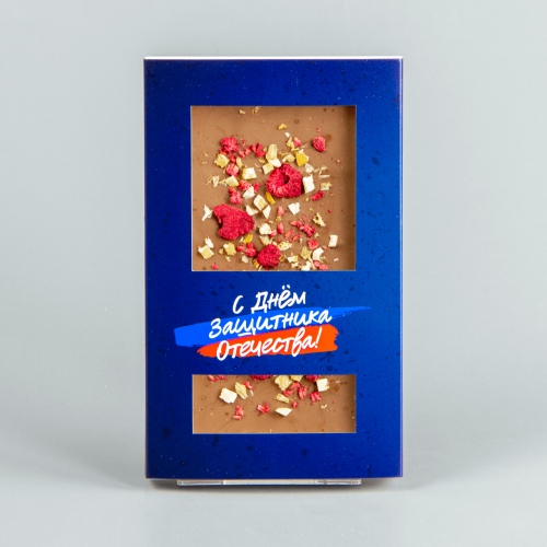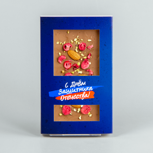 Молочный шоколад с клюквой, миндалём и фисташками, синяя коробочка #19