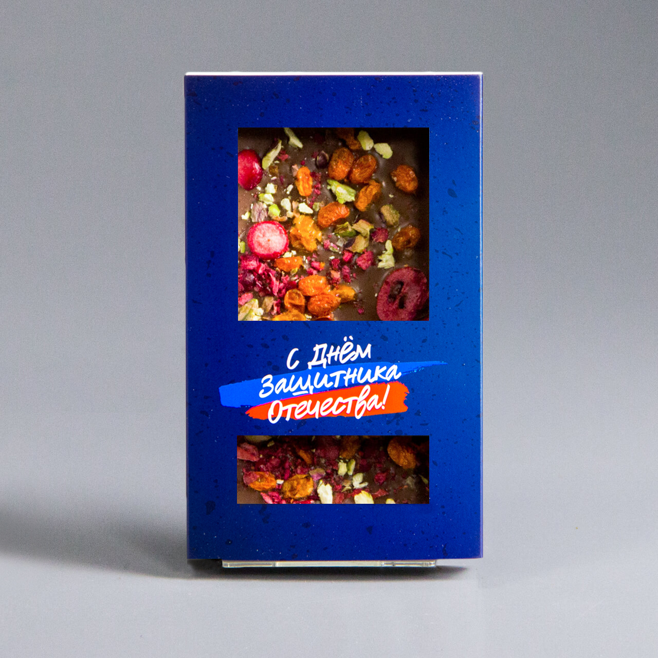 Молочный шоколад с клюквой, облепихой и фисташками, синяя коробочка #11