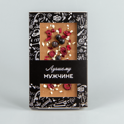 Молочный шоколад с малиной, абрикосом и семечками тыквы, коробочка мужчине #21