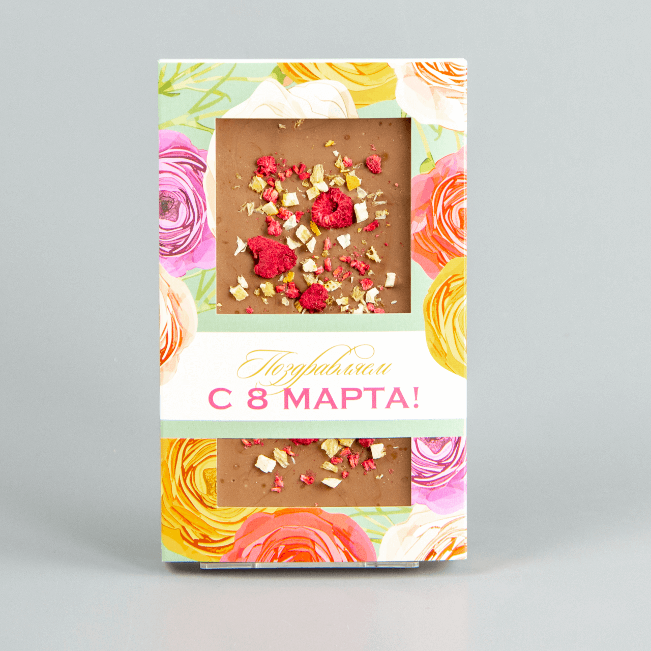 Молочный шоколад с малиной и апельсином, коробочка с 8 марта #18
