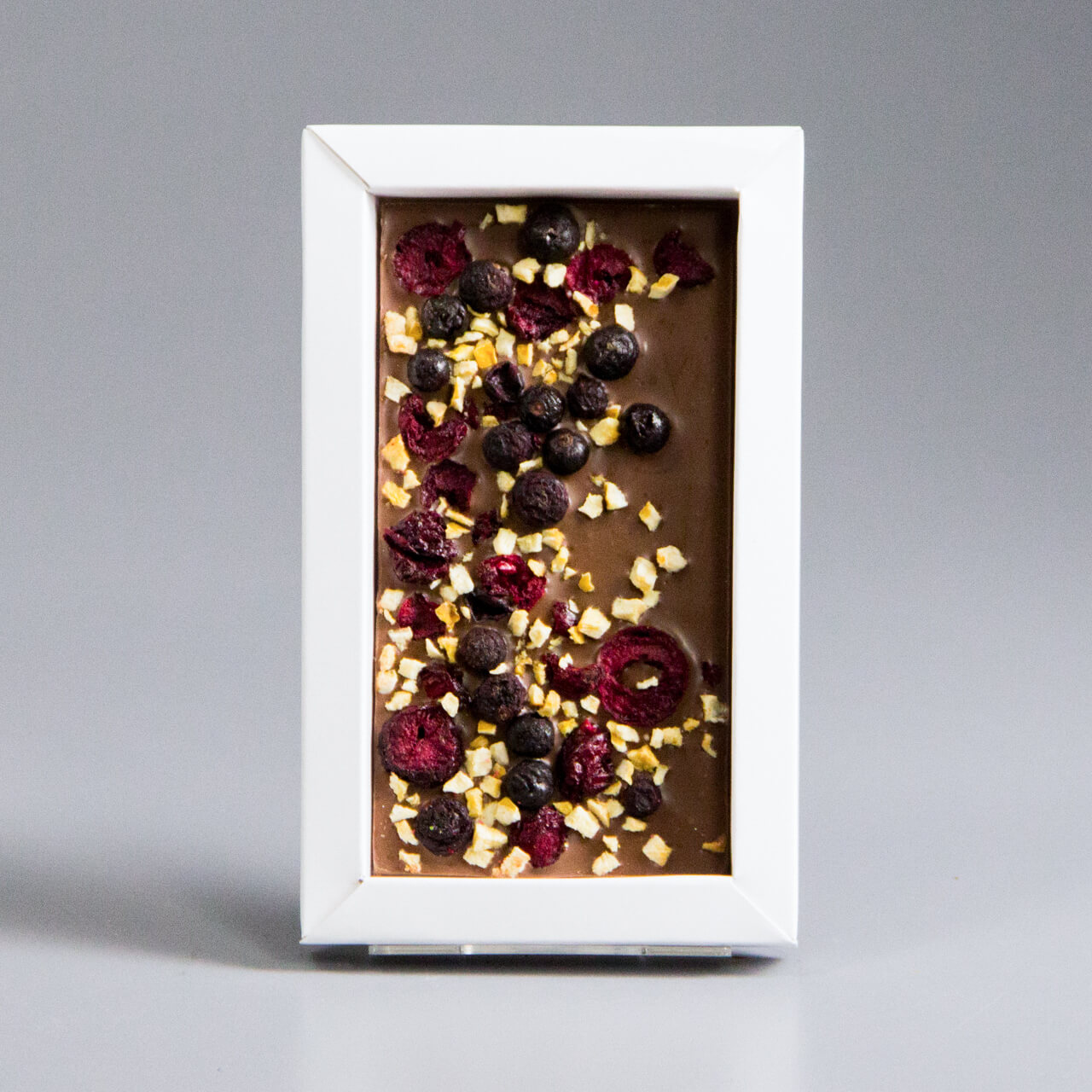 Молочный шоколад с вишней, смородиной и абрикосом, коробочка мужчине #13
