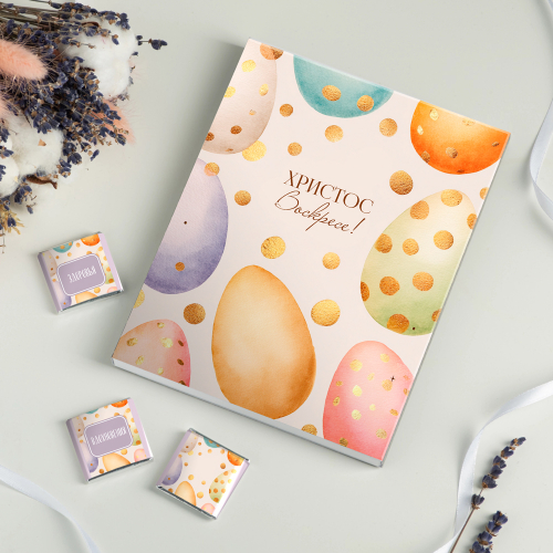 Набор 12 шоколадок "ХВ - Светлой Пасхи (яичко с золотом)"