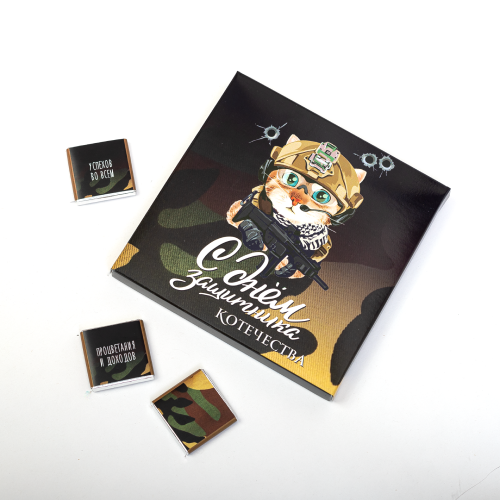 ● Набор 9 шоколадок "С днём защитника котечества" (кот с автоматом)