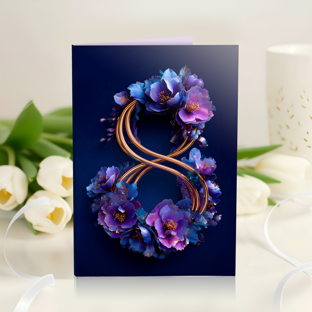 Открытка 4 шоколадки "8 (тёмная с золотом и цветами)"