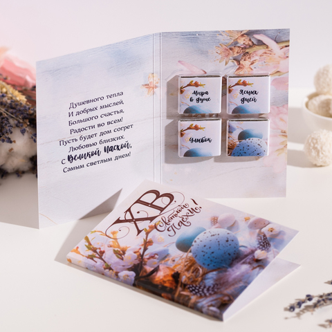 Открытка 4 шоколадки "ХВ Светлой пасхи (голубая)"
