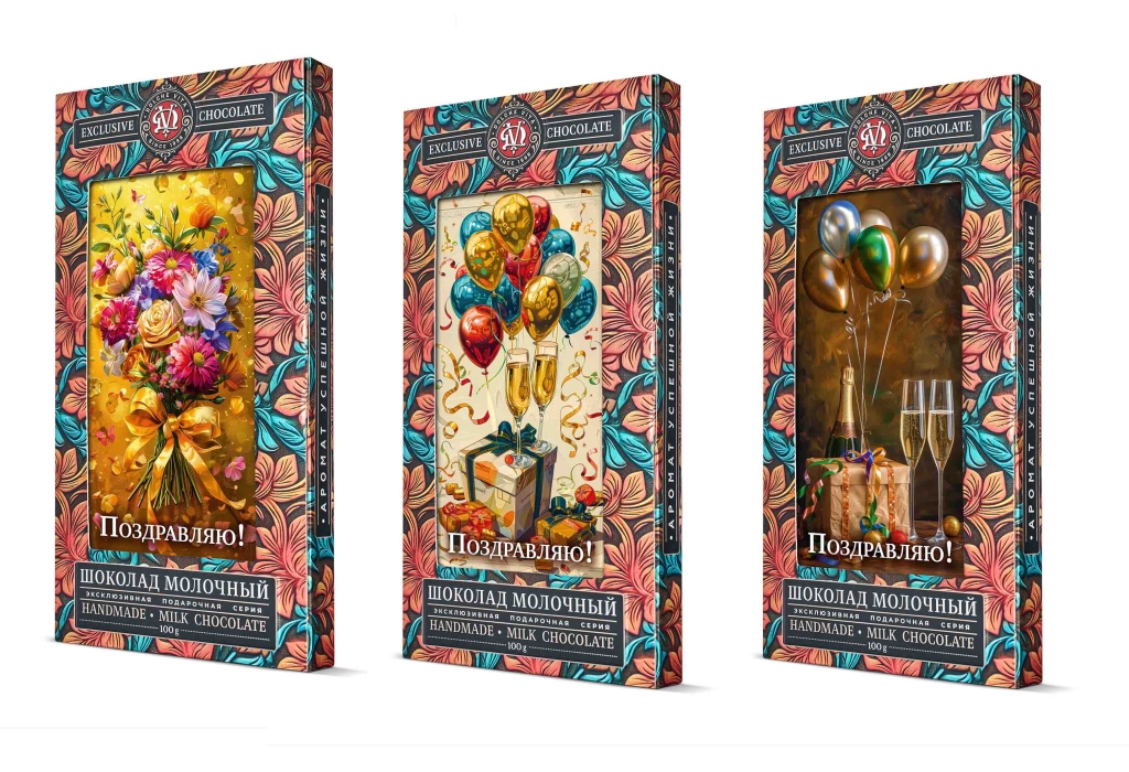 "Поздравляю ! " молочный шоколад , набор ассорти из 3 дизайнов.