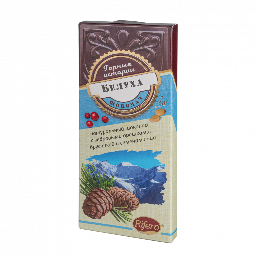 Риф и Ко Шоколадная плитка «Белуха»(кедровые орехи,брусника, чиа) (блок 18шт по 55г)