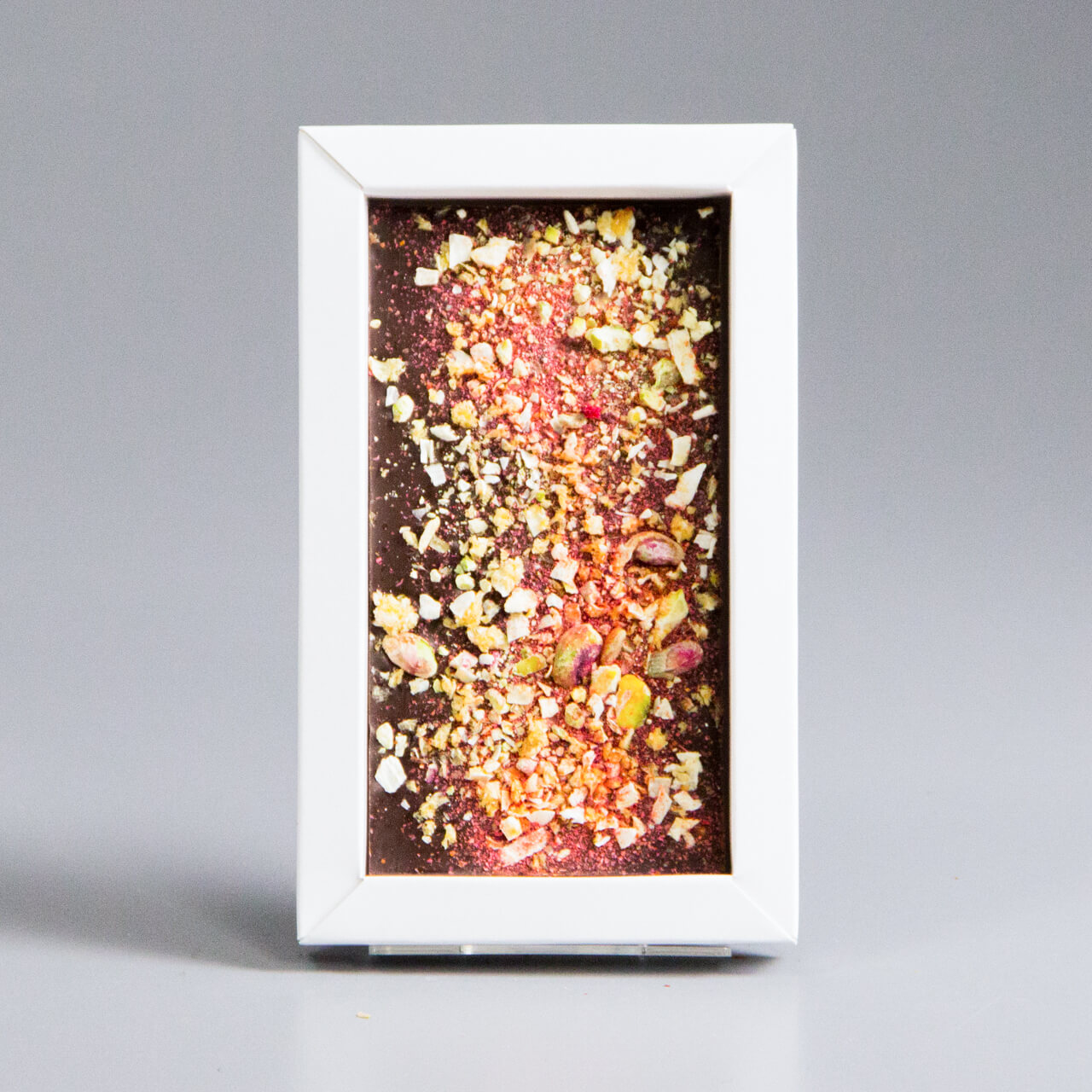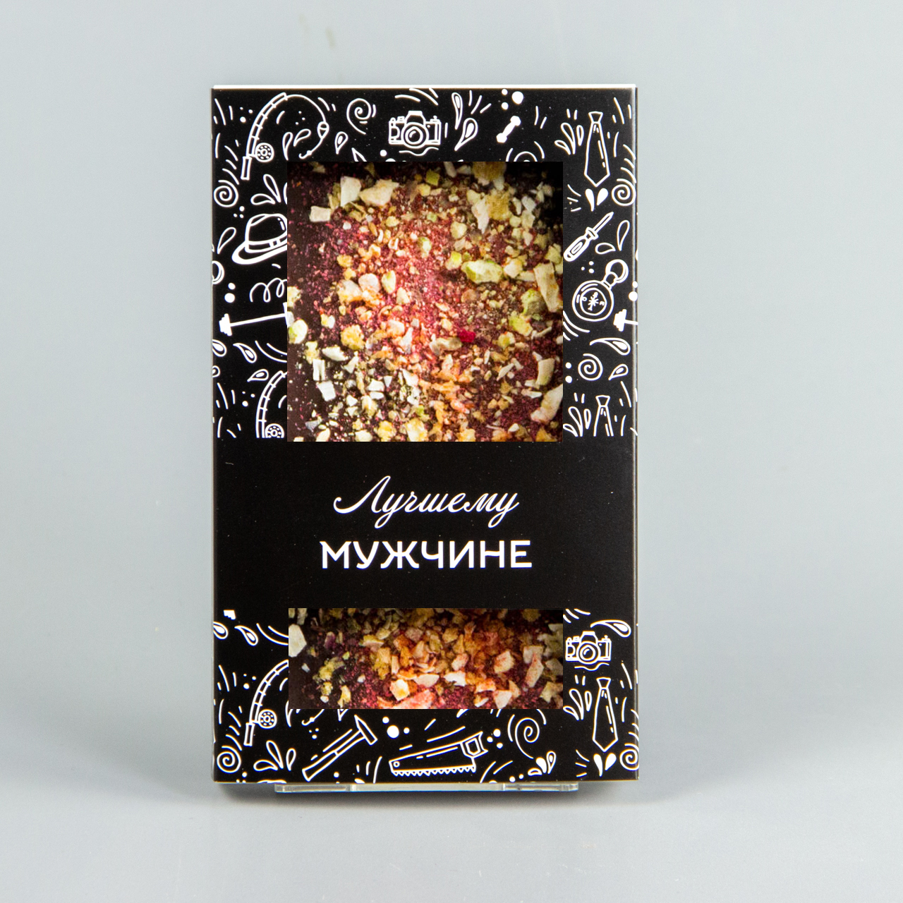 Тёмный шоколад с апельсином, перцем чили и фисташками, коробочка мужчине #13