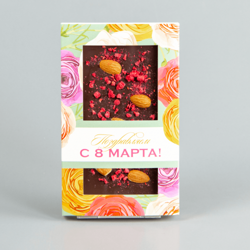 Тёмный шоколад с апельсом, облепихой и черной смородиной, коробочка с 8 марта #20