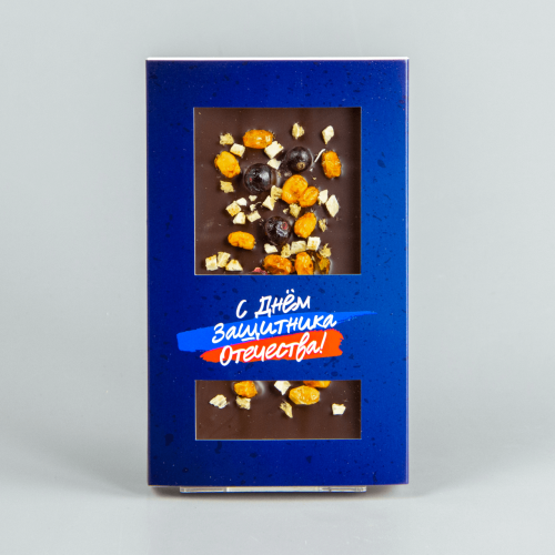 Тёмный шоколад с апельсом, облепихой и черной смородиной, синяя коробочка #20