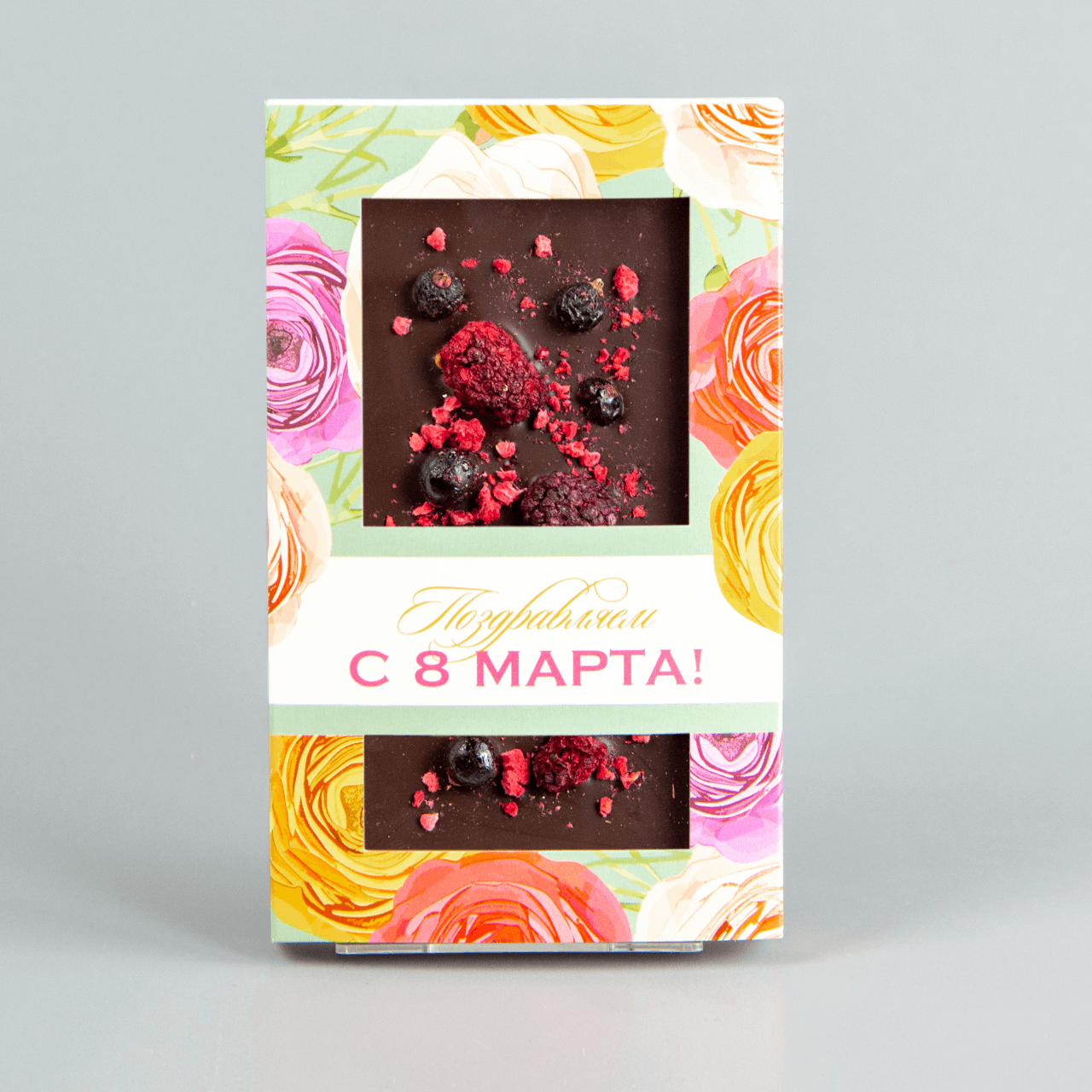 Тёмный шоколад с ежевикой, малиной и черной смородиной, коробочка с 8 марта #28