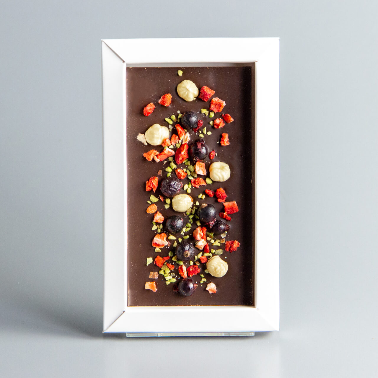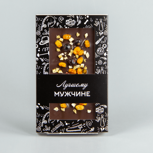 Тёмный шоколад с клубникой, чёрной смородиной, фисташками и фундуком, коробочка мужчине #1