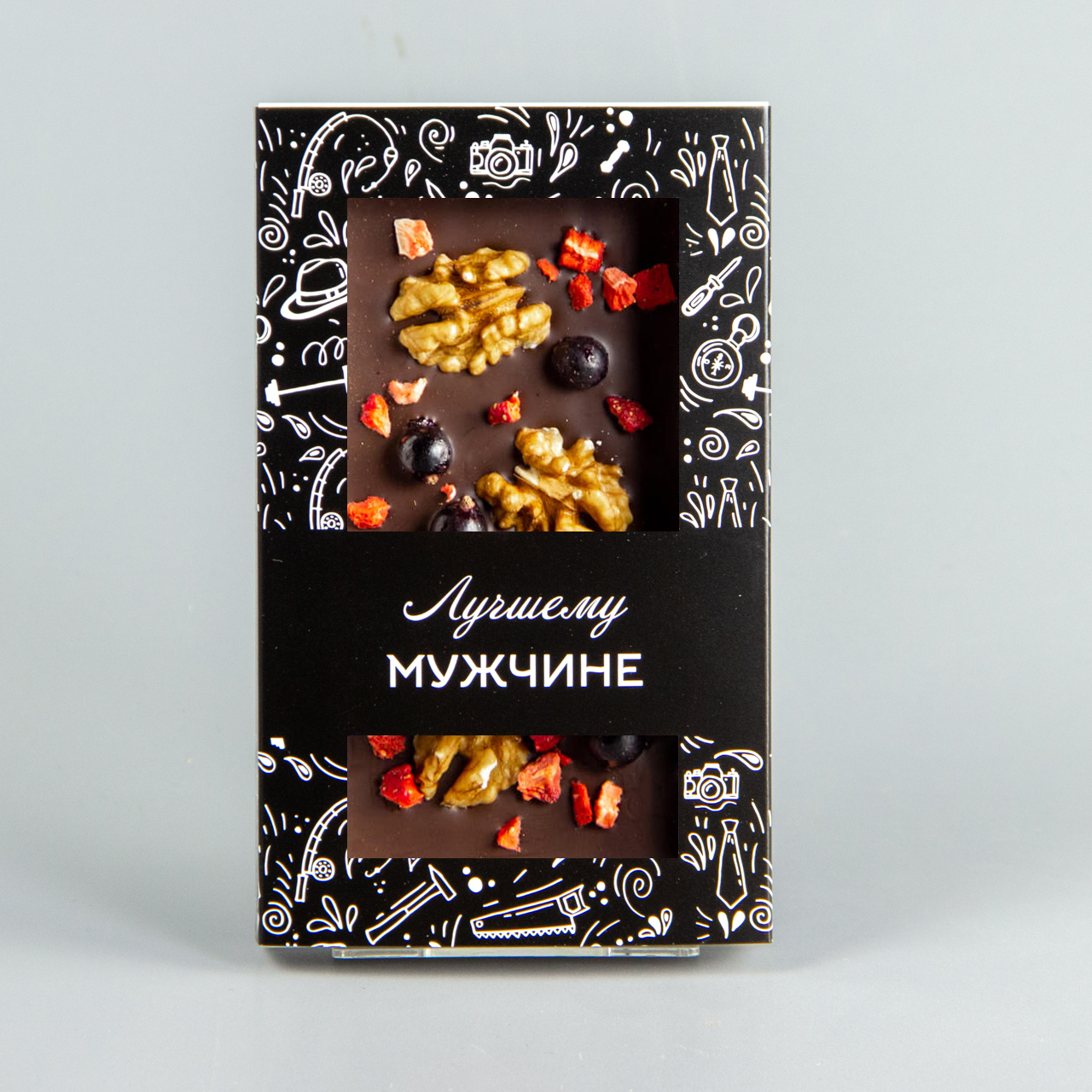 Тёмный шоколад с клубникой, черной смородиной и грецким орехом, коробочка мужчине #4