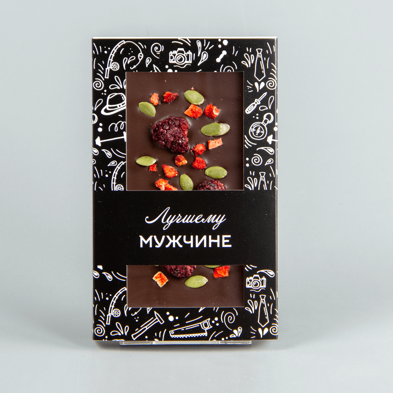 Тёмный шоколад с клубникой, ежевикой и семечками тыквы, коробочка мужчине #27
