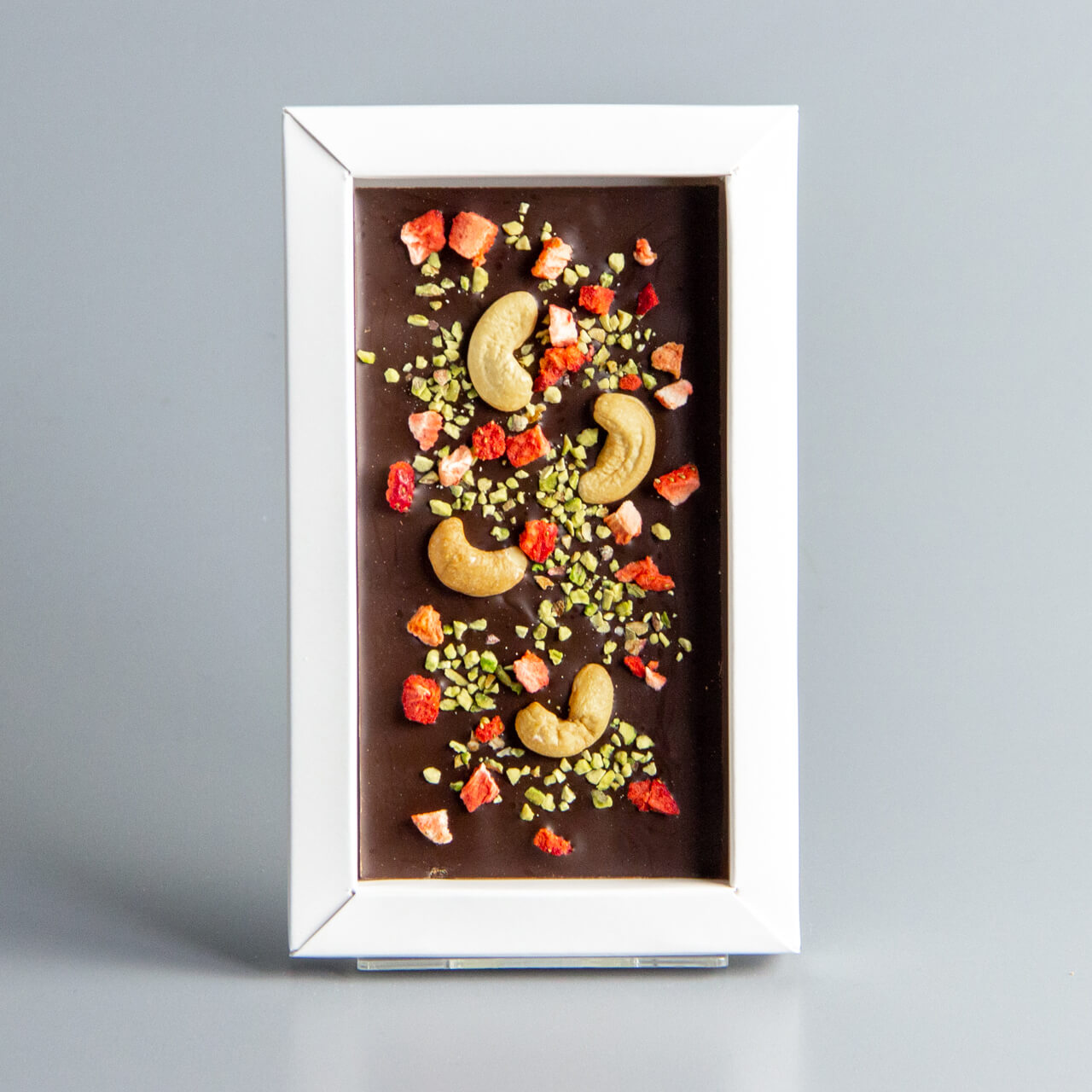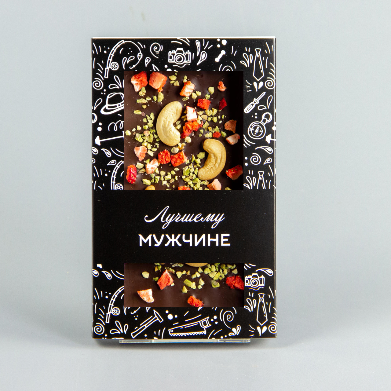 Тёмный шоколад с клубникой, фисташками и жаренным кешью, коробочка мужчине #9