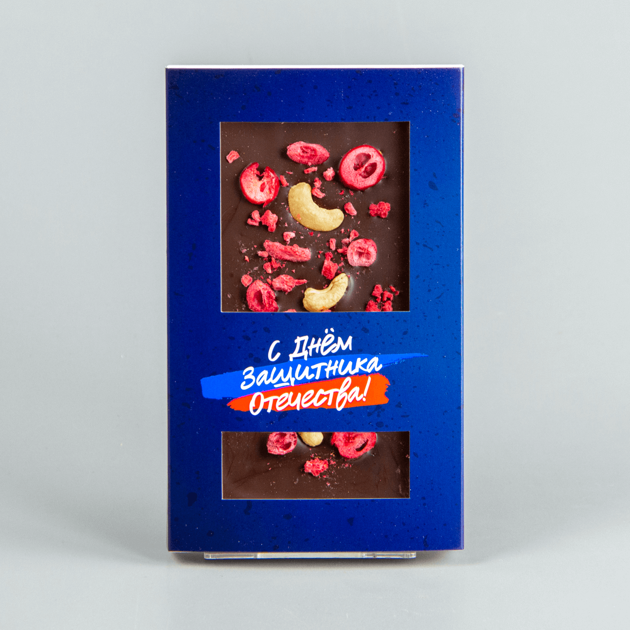 Тёмный шоколад с клюквой, малиной и жаренным кешью, синяя коробочка #26