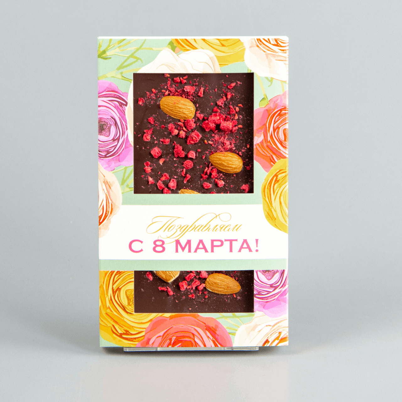 Тёмный шоколад с малиной и мидалём, коробочка с 8 марта #29