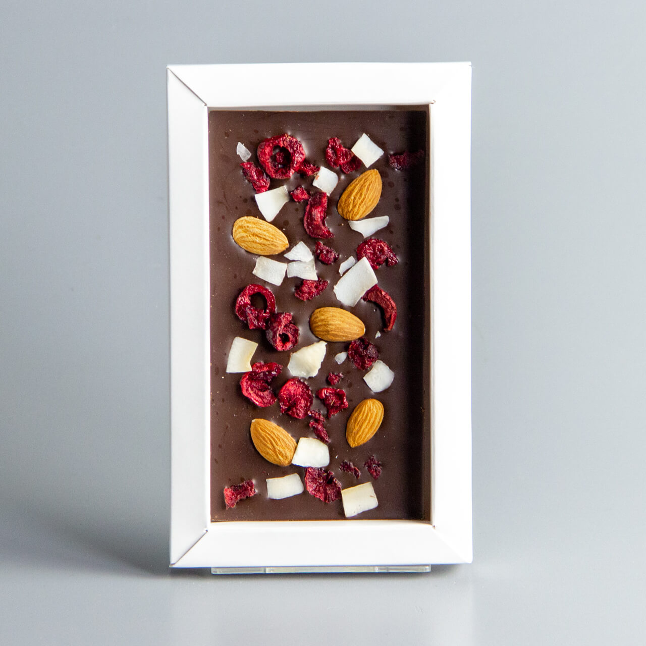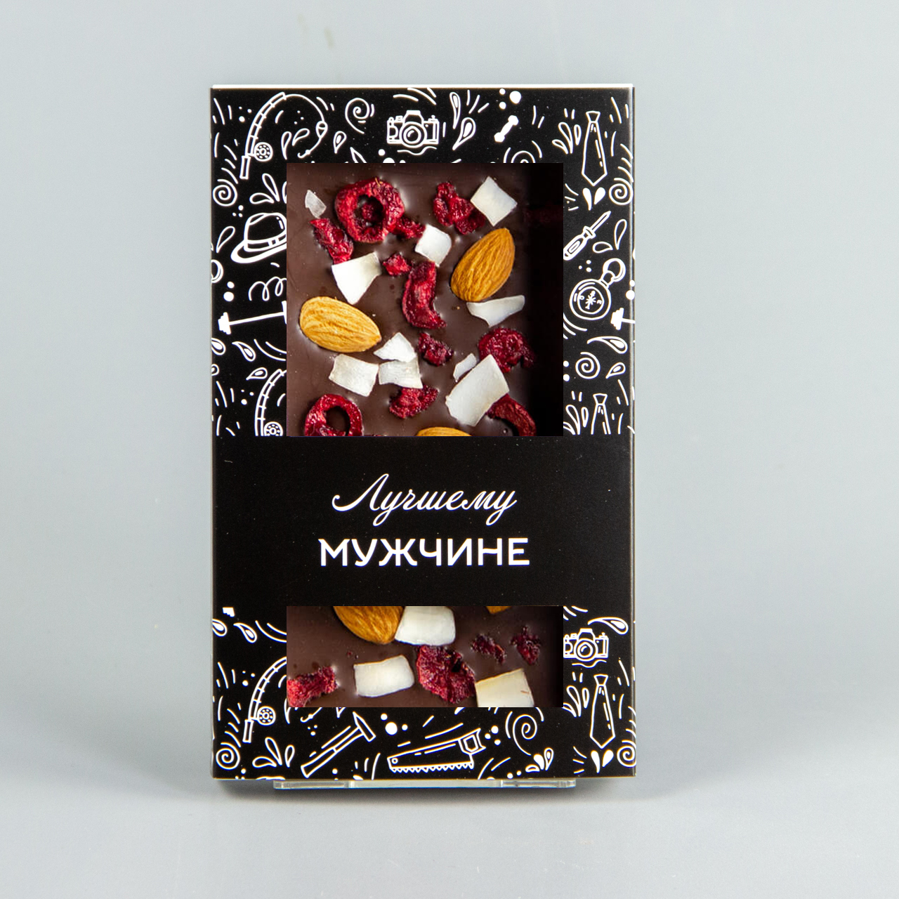 Тёмный шоколад с вишней, миндалем и кокосом, коробочка мужчине #11