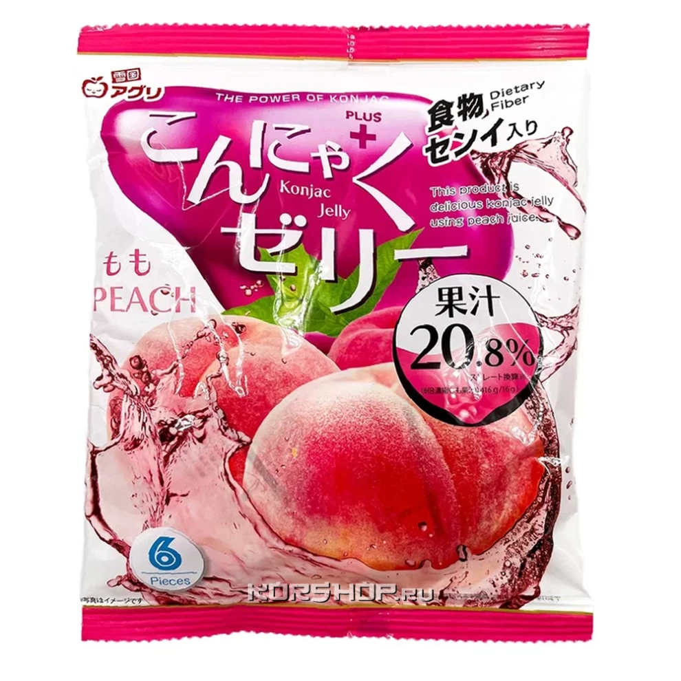 Конжаковое желе (Коньяку) с натуральным персиком Yukiguni Aguri, Япония, 96г (16 г*6шт) Акция
