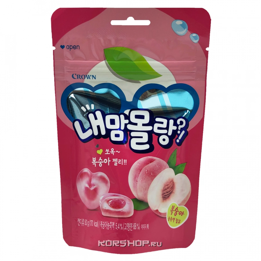 Мармелад Сердечки со вкусом персика Crown, Корея, 50 г Акция
