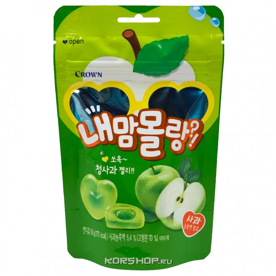 Мармелад Сердечки со вкусом зеленого яблока Crown, Корея, 50 г Акция