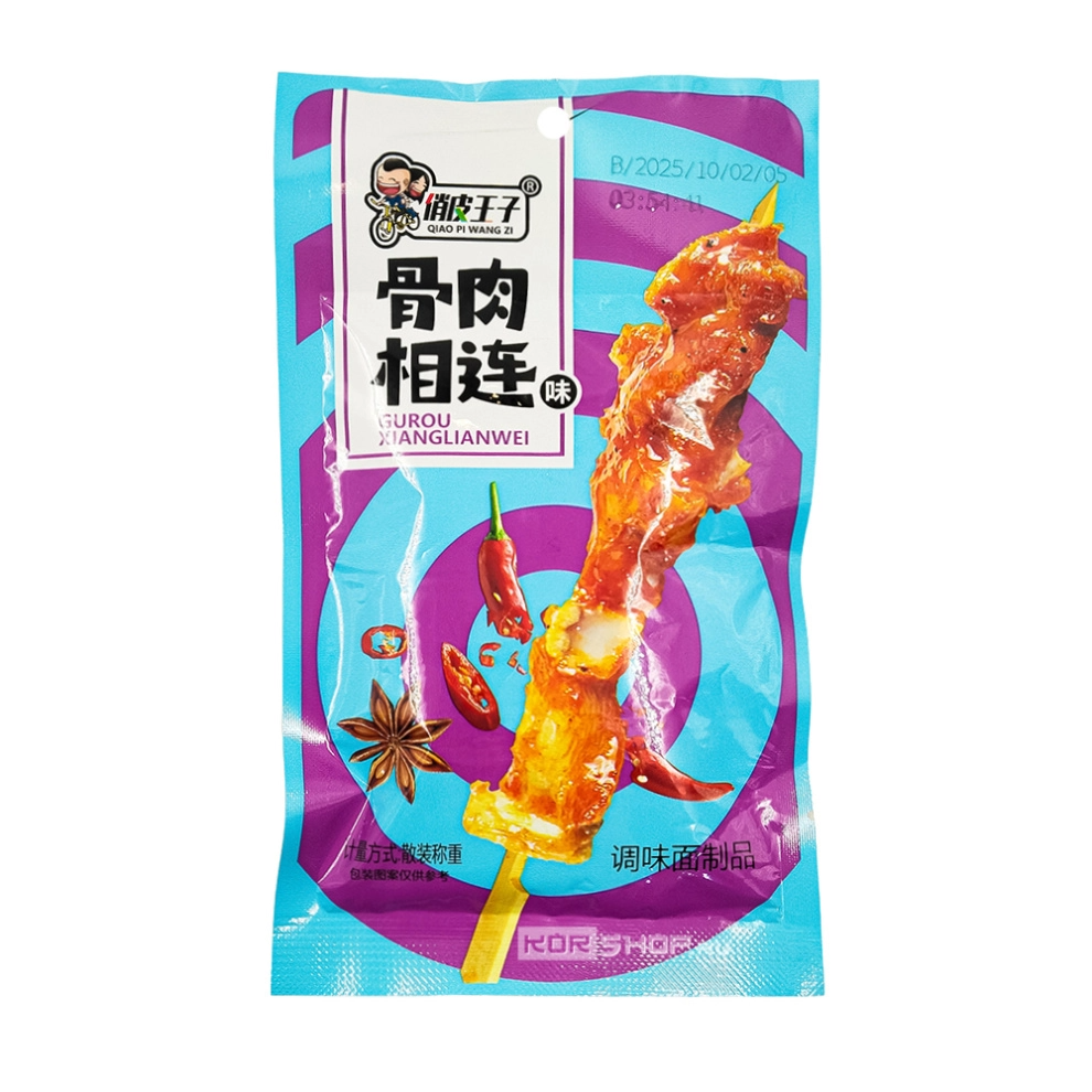 Мучные снеки латяо сладко-пряные со вкусом китайских мясных шашлычков Игривый Принц - это интересная китайская закуска на основе пшеничного теста с добавлением особой комбинации пряностей, специй и перца чили. Этот микс пряностей китайские повара традиционно используют, чтобы посыпать ими мясные шашлычки – старинное блюдо китайской кухни из мелких кусочков мяса, нанизанных на бамбуковую шпажку и приправленных богатой смесью специй, чей узнаваемый вкус и аромат у китайцев ассоциируется именно с мясными шашлычками. Сладко-пряные, чуть островатые снеки латяо порадуют гурманов тем самым вкусом и дразнящим аппетит благоуханием, а тягучая, жевательная, упругая текстура латяо на основе пшеничного теста станет более интересной альтернативой мясу за счет того, что приятно тянется и долго жуется.