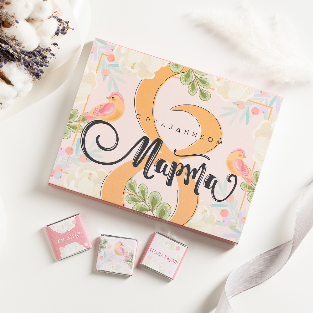 Набор 12 шоколадок "С праздником 8 марта (розовый с бежевым)"