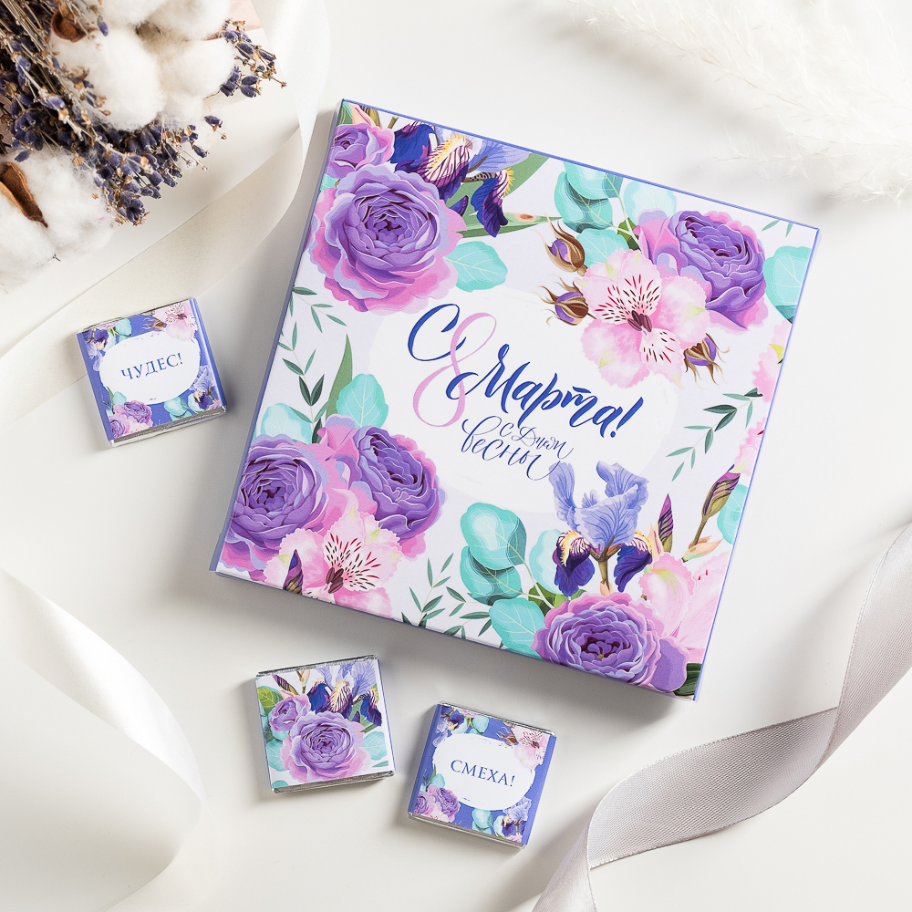 Набор 9 шоколадок "С 8 марта, с днем весны (цветы на сиреневом)"