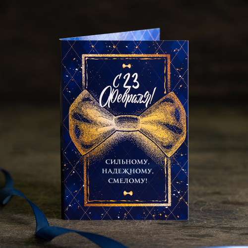 ● Открытка 4 шоколадки "С 23 февраля, сильному, надежному, смелому"