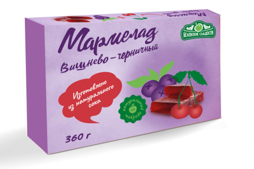 Сахар-песок патока пюре яблочное желирующий агент - пектин яблочный регулятор кислотности – кислота лимонная концентрированный черничный сок концентрированный вишневый сок.в коробке: 20шт