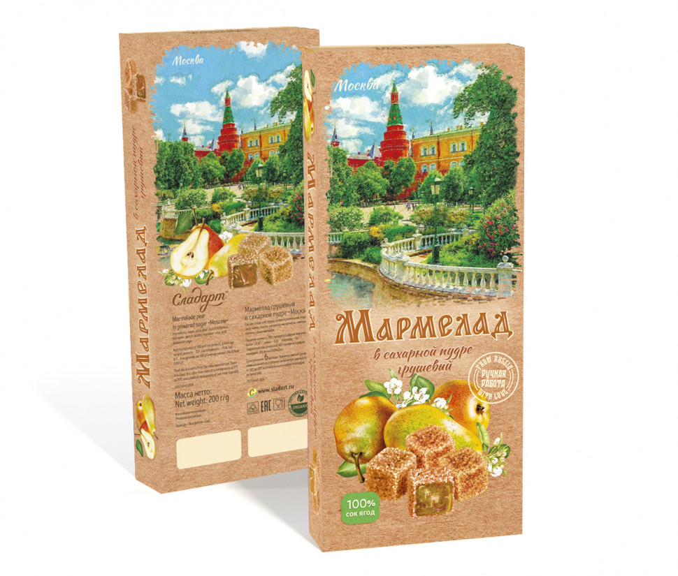 Срок годности: 6 месяцев Вложений..показать в коробке: 18 шт Производитель: Сладарт ООО Вес: 200 гсахар сок груши патока крахмальная вода загуститель пектин лимонная кислота сахарная пудра в коробке: 18 шт