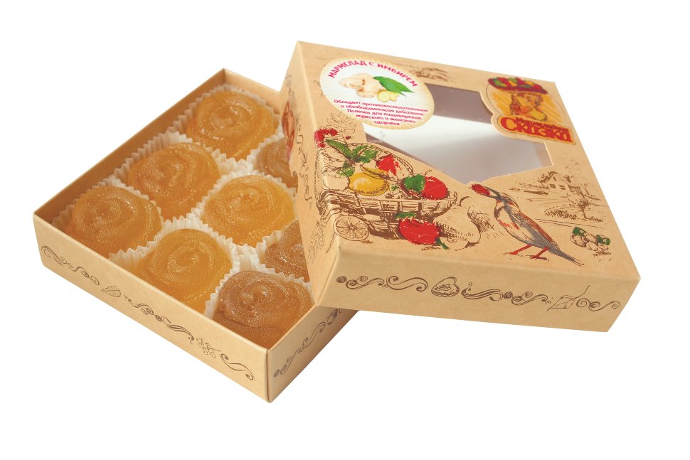 сахар-песок патока корень имбиря агент желирующий - пектин регулятор кислотности - кислота лимонная глазирователь - пчелиный воскв коробке: 6 шт