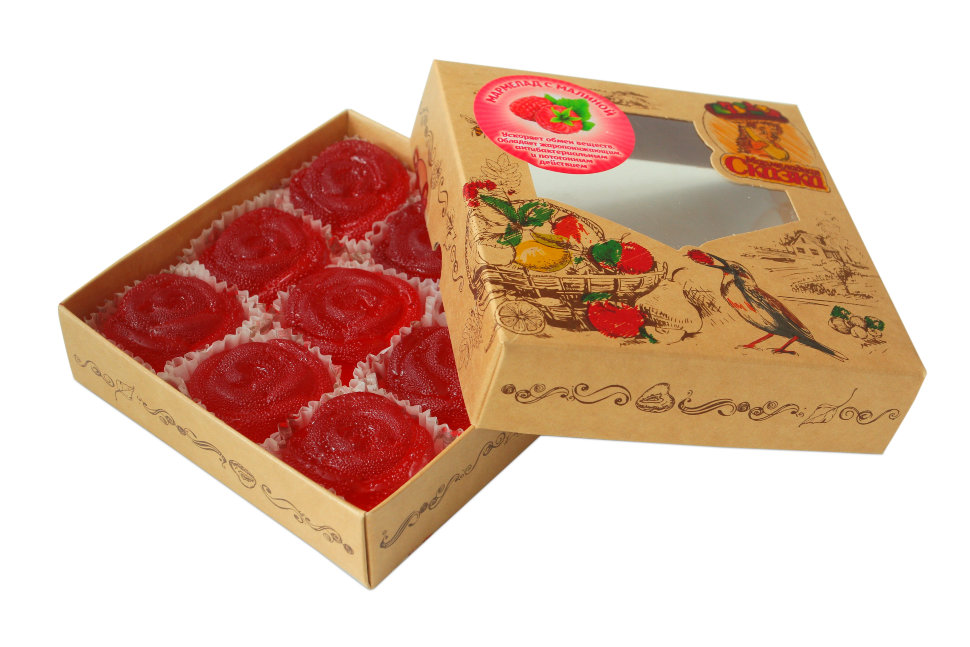 сахар-песок патока малина агент желирующий - пектин регулятор кислотнойти - кислота лимонная глазирователь - пчелиный воскв коробке: 6 шт