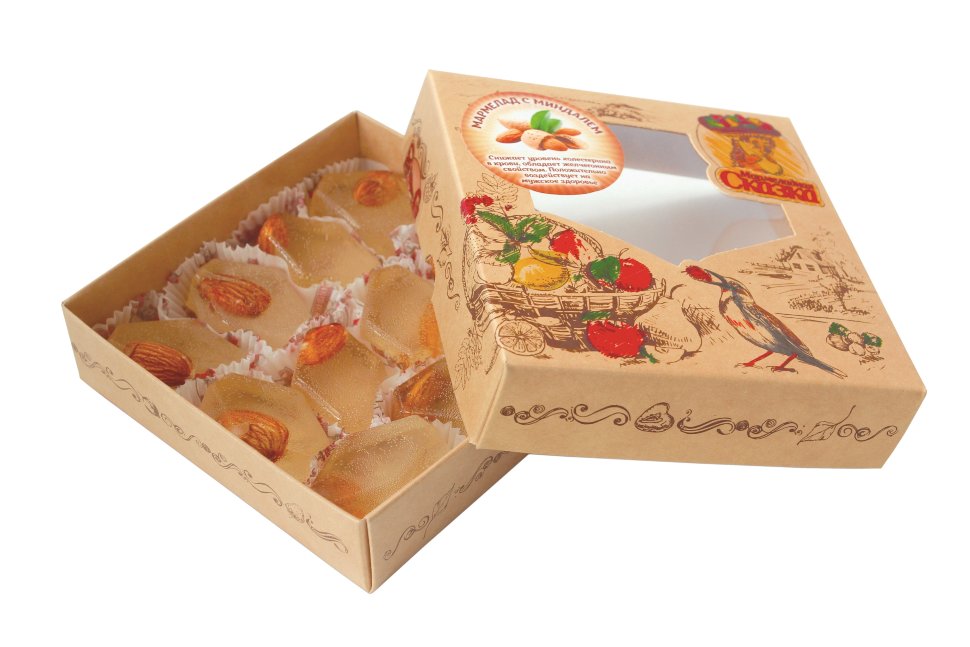 сахар-песок патока миндаль агент желирующий - пектин регулятор кислотности - кислота лимонная глазирователь - пчелиный воск ароматизатор натуральный карамельв коробке: 6 шт