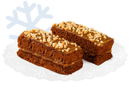 Пирожное «Карамели» Шоколадный бисквит со сгущенкой и арахисом