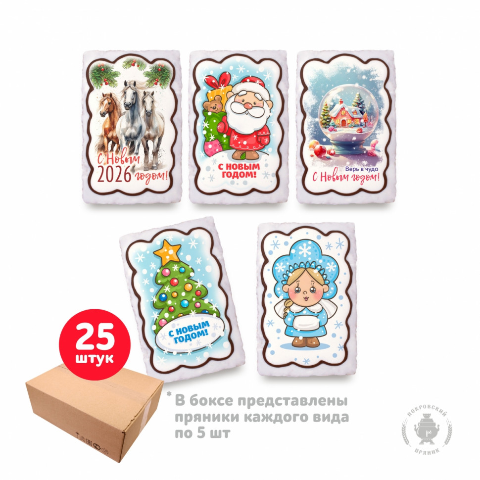 Пряник 130г новогодний "Ассорти №1", (коробка 25шт)