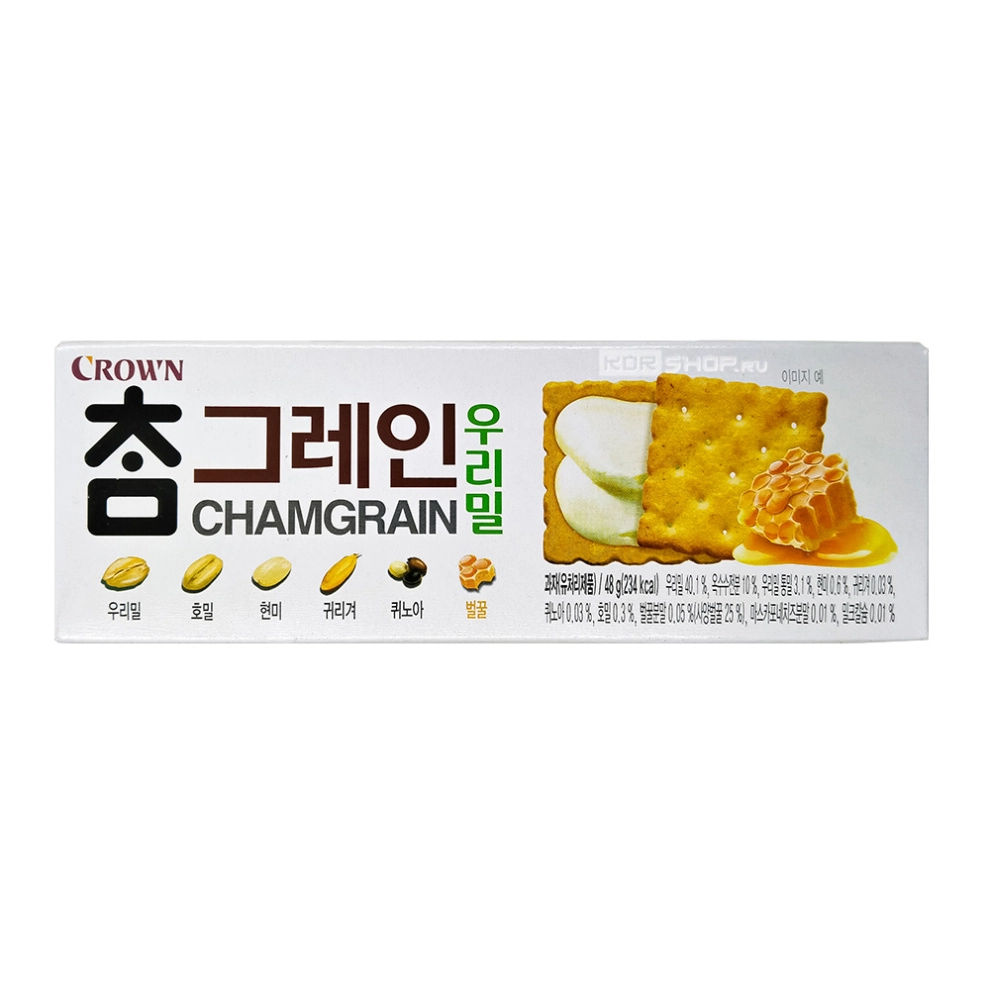 Печенье с кремовой начинкой (мёд, сыр Маскарпоне) Cham Grain Crown – это изысканное лакомство из Кореи с богатым сложным вкусом, которое приведет в восторг гурманов и ценителей необычных сладких угощений. Печенье нежное, рассыпчатое, с ароматом мёда и ванили, а вкус сливочного сыра Маскарпоне придает ему особые нотки. Такое угощение станет прекрасным дополнением семейного чаепития. Печенье обогащено коричневым рисом, киноа и овсяными отрубями – источниками витаминов, минералов и клетчатки. Это питательное лакомство подарит не только удовольствие, но и заряд энергии, и дополнительную подпитку иммунитету.