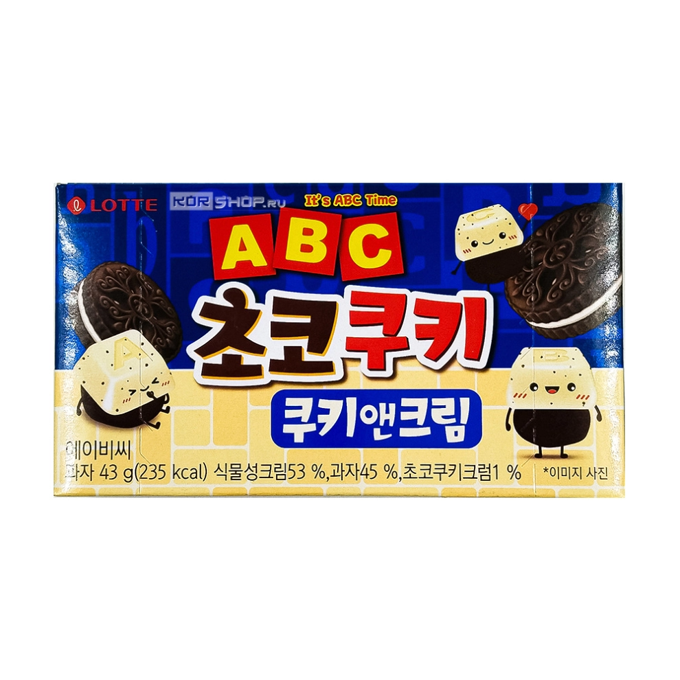 Печенье шоколадное с кремом ABC Choco Cookie & Cream – интересное лакомство от корейского производителя Lotte. Оно представляет собой миниатюрные шоколадные печенья, увенчанные кубиком из сливочного крема. Хрустящее печенье и нежный крем тают во рту и дарят наслаждение вкусом. Благодаря мини-формату десертом удобно лакомиться. Печенье очень вкусно с молоком, какао, горячим шоколадом, чаем или кофе. Веселые кубики с буквами поднимут настроение. Печенье не только порадует изысканным вкусом, но и подарит заряд энергии в течение дня.